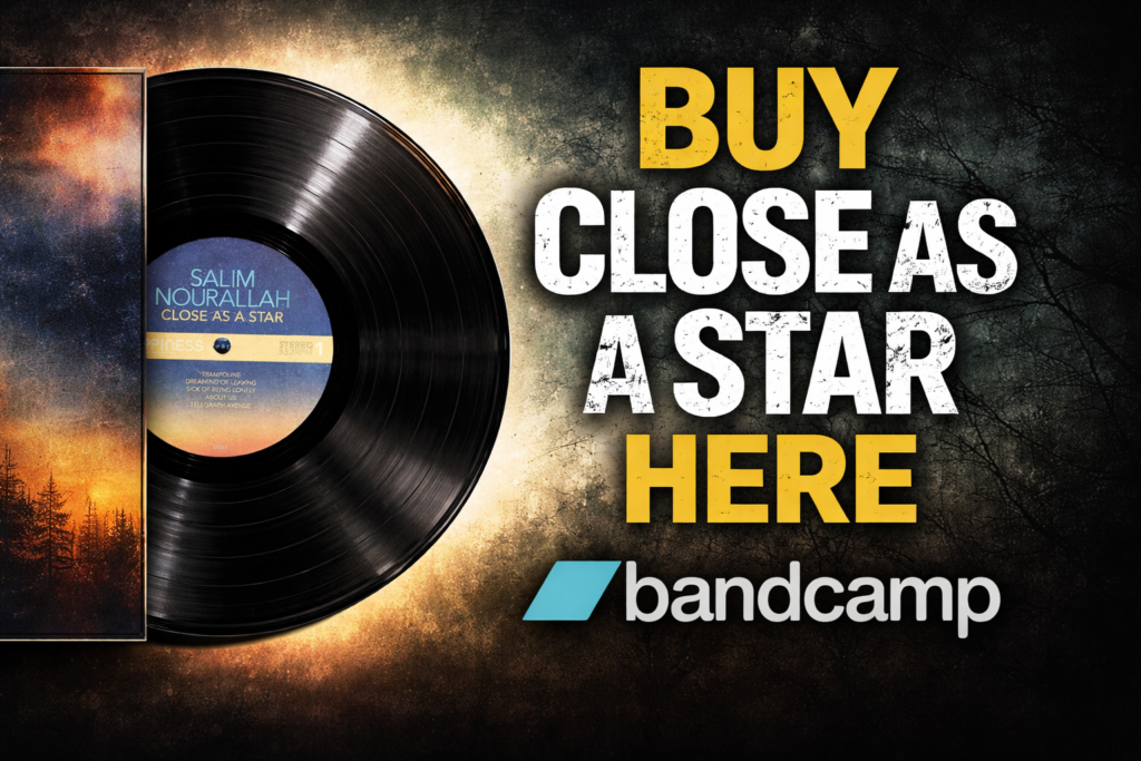 Like much of Salim Nourallah’s indie rock catalog, Close as a Star pairs guitar-driven brightness with emotionally precise songwriting. Hearts break. Feet tap. The drums insist on forward motion even when the lyrics suggest surrender.